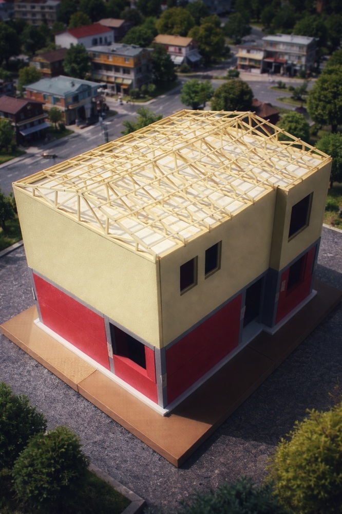 En esta etapa, se ha desarrollado la maqueta física de la vivienda, incluyendo su estructura, espacios interiores y sistema constructivo, el cual será utilizado en distintas rondas para evaluar el desempeño de los participantes diferenciando la gestión tradicional y la basada en principios Lean.