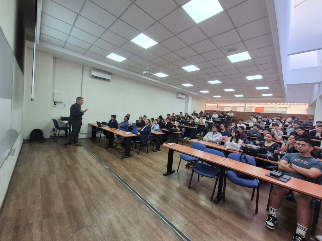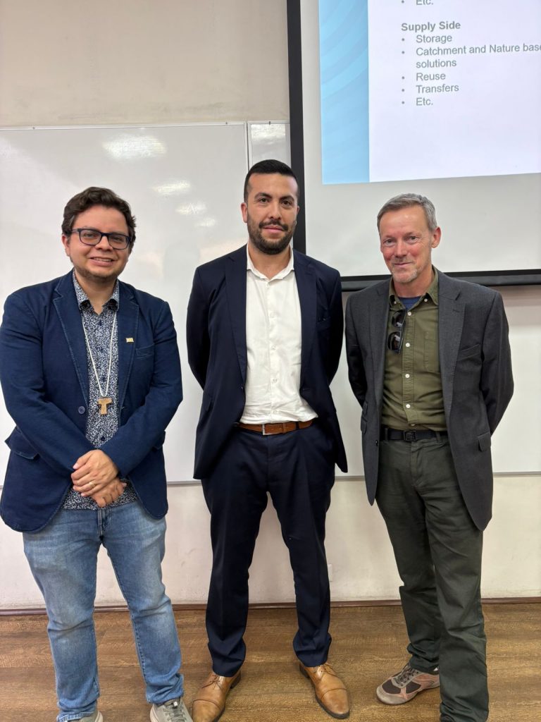 El pasado martes 4 de noviembre dse desarrolló una interesante charla en el Campus Santiago San Joaquín. Esta iniciativa impulsado por el profesor de Ingeniería Sanitaria, Víctor Gálvez, contó con la participación del experto internacional Trevor Bishop y el profesor del Departamento de Obras Civiles Miguel Lagos.